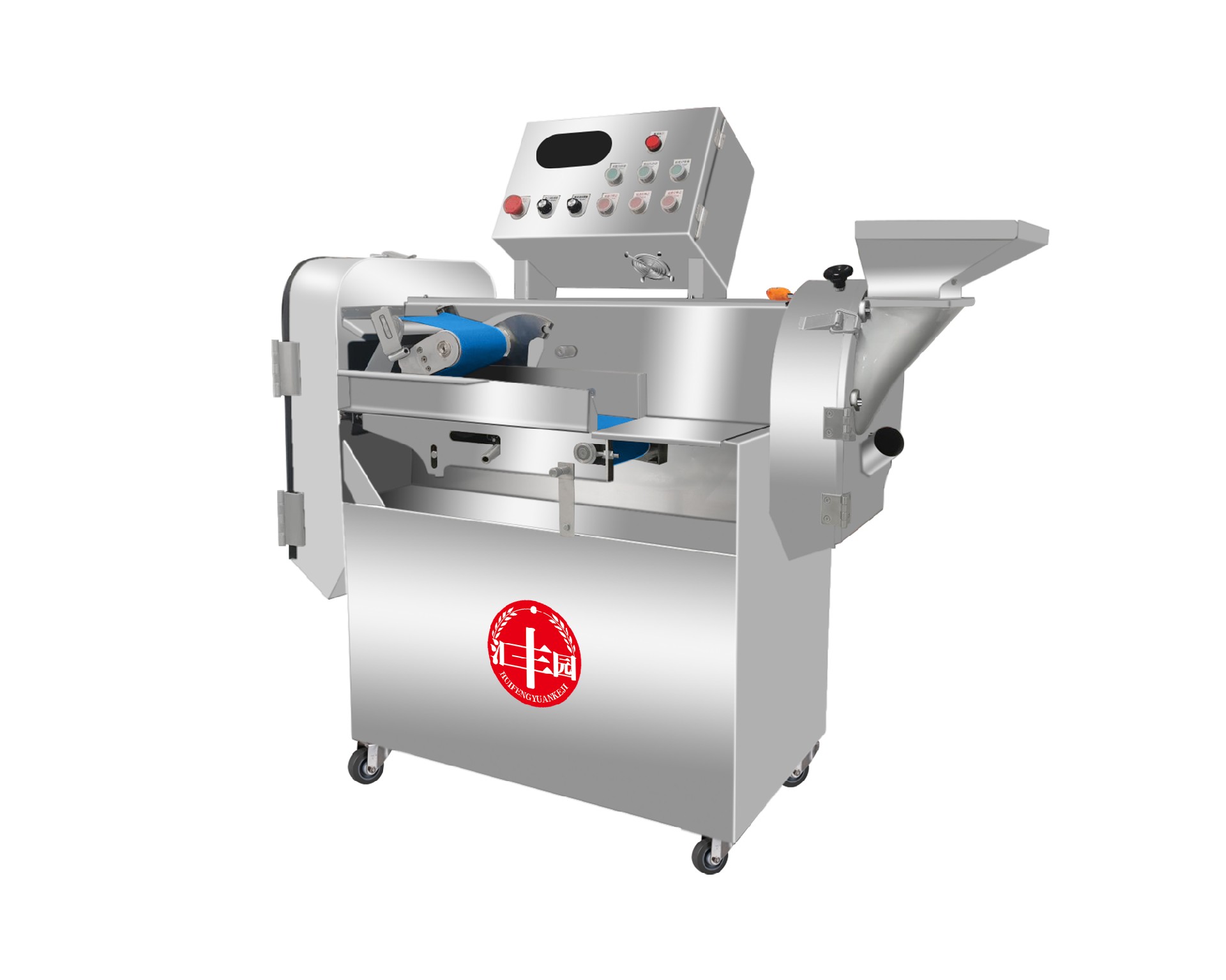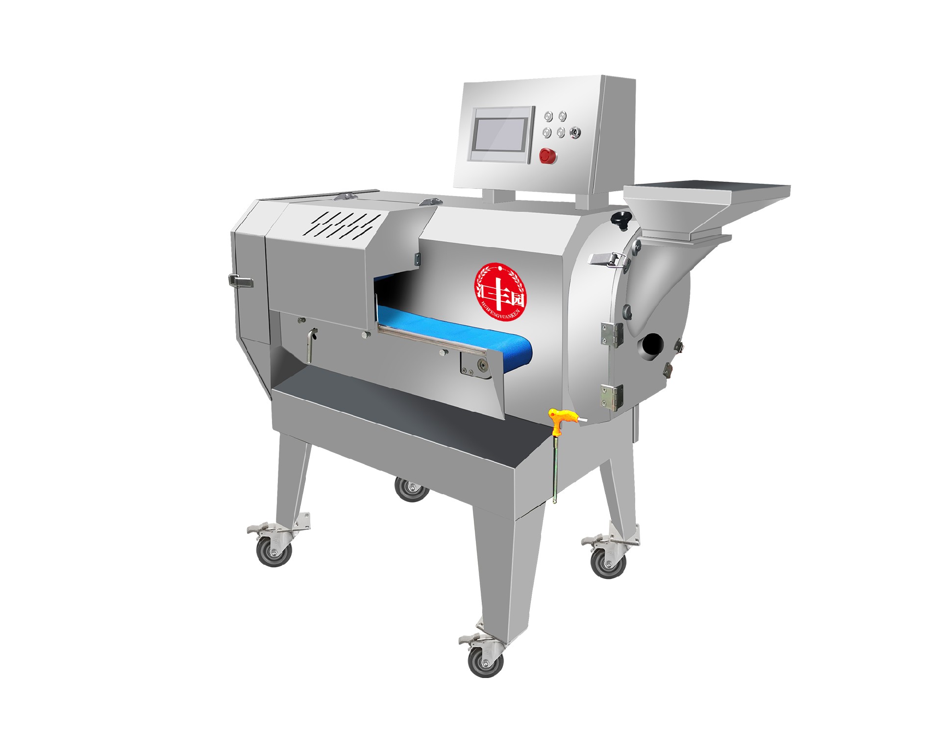 本設(shè)備幾乎可切任何瓜果蔬菜,如:切片、絲、丁,末、段等;具備雙調(diào)頻功能,一頭是切葉菜類,如長(zhǎng)蔥,蒜苗,韭菜,芹菜,白菜, 青菜等等,一頭是切球根莖類,如蘿卜,土豆,紅薯,芋頭,筍,洋蔥,茄子,蘋(píng)果,生姜等等眾多瓜果類蔬菜。葉菜類的輸送帶速度和 轉(zhuǎn)刀速度采用PLC數(shù)控屏操作,均可獨(dú)立控制,葉菜切割規(guī)格:1~50mm可調(diào)。切部份根莖類;根徑部份刀盤(pán)范圍:片:2-10MM,絲: 2-6MM,丁:8MM、10MM、12MM、15MM、20MM選一;一機(jī)多用,功能強(qiáng)大,產(chǎn)量高,操作簡(jiǎn)單,皮帶可快速拆卸,并可水槍沖洗, 清洗方便。 | |