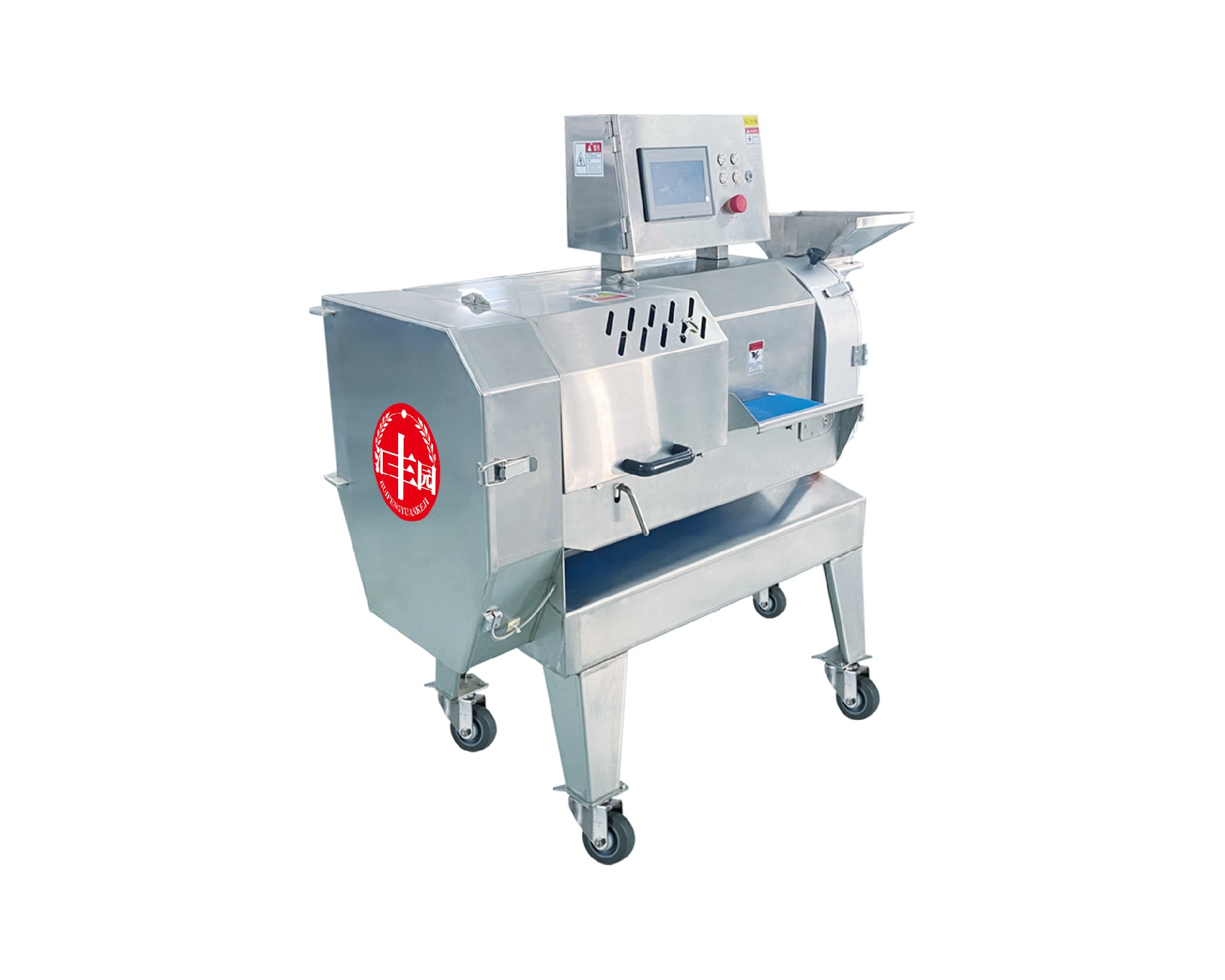 本設(shè)備幾乎可切任何瓜果蔬菜,如:切片、絲、丁,末、段等;具備雙調(diào)頻功能,一頭是切葉菜類,如長(zhǎng)蔥,蒜苗,韭菜,芹菜,白菜, 青菜等等,一頭是切球根莖類,如蘿卜,土豆,紅薯,芋頭,筍,洋蔥,茄子,蘋(píng)果,生姜等等眾多瓜果類蔬菜。葉菜類的輸送帶速度和 轉(zhuǎn)刀速度采用PLC數(shù)控屏操作,均可獨(dú)立控制,葉菜切割規(guī)格:1~50mm可調(diào)。切部份根莖類;根徑部份刀盤(pán)范圍:片:2-10MM,絲: 2-6MM,丁:8MM、10MM、12MM、15MM、20MM選一;一機(jī)多用,功能強(qiáng)大,產(chǎn)量高,操作簡(jiǎn)單,皮帶可快速拆卸,并可水槍沖洗, 清洗方便。 | |